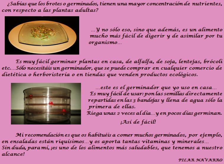 NUTRICIÓN Y SALUD LOS GERMINADOS…¡una auténtica fuente de salud! Fecha: 22 octubre, 2013Autor/a: Pilar Navarro 0 Comentarios Comparte esto: Comparte en Facebook (Se abre en una ventana nueva) Facebook Enviar un enlace a un amigo por correo electrónico (Se abre en una ventana nueva) Correo electrónico Me gusta Cargando... Relacionado