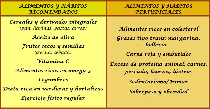 1- Evita la ingesta de alimentos ricos en colesterol (Ver tabla 1).