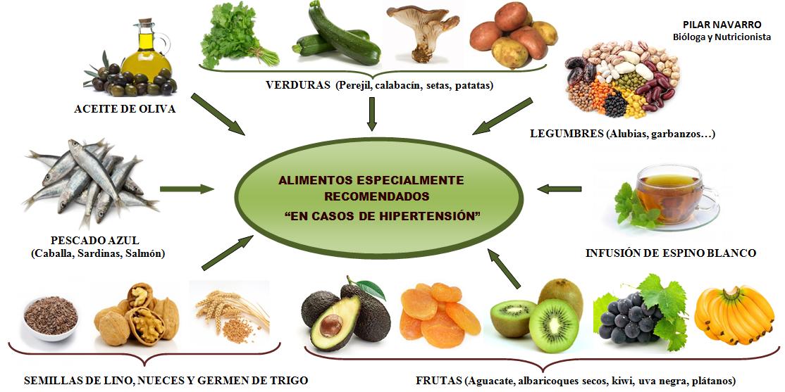 Una dieta adecuada, debe incluir alimentos ricos en potasio y bajos en sodio, alimentos ricos en calcio y en magnesio y los alimentos con un elevado contenido en ácidos grasos omega-3 y ácido oleico.